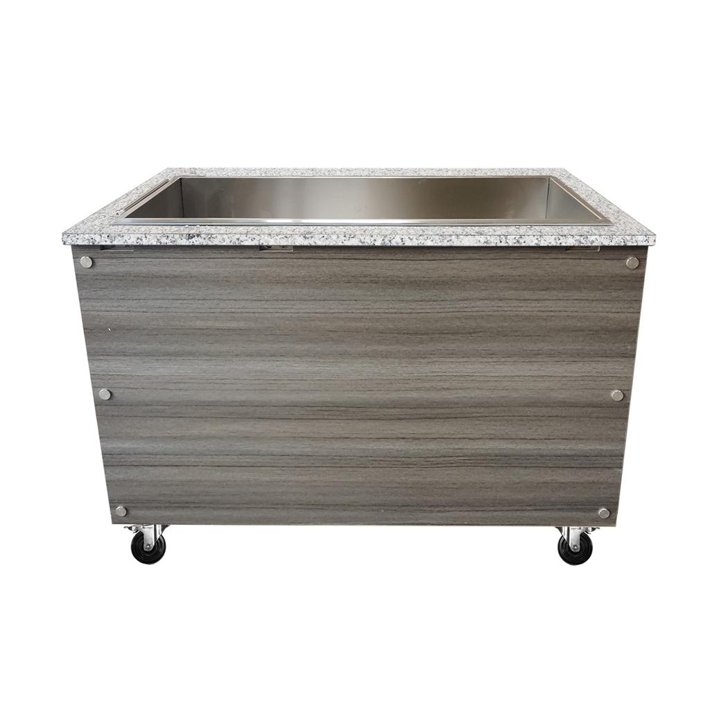 Skyrainbow SNACK-Line Bain-Marie Theke 2x GN1/1, Granit rosa-grau, 88x82x85,5 Glasaufbau Klarglas ohne Zwischenablage, H=396mm