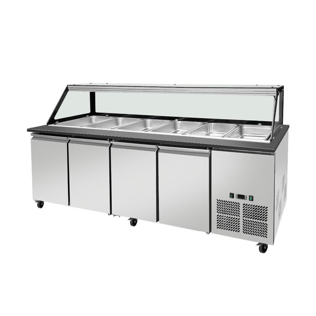 Skyrainbow SNACK-Line, Kalte Theke, 6x GN1/1, Granit Star Galaxy schwarz, 223x82x85.5 Glasaufbau Klarglas schwarzer Rand, ohne Zwischenablage H=396mm